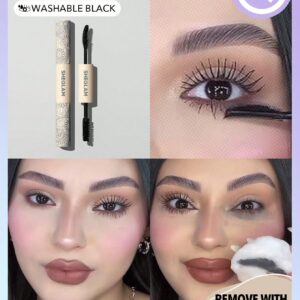 SHEGLAM ماسكارا كل في واحد للحجم والطول، غسلها بالماء، أسود، فرشاة رأسين 2 في 1، سهلة الإزالة، لا تتلطخ، منحنية، فصل، سميكة، سوداء، مكياج العين – Size: Easy-Off-one-size