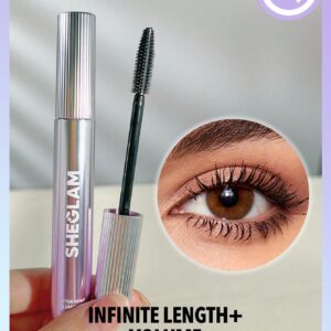 SHEGLAM ماسكارا كل في واحد للحجم والطول، غسلها بالماء، أسود، فرشاة رأسين 2 في 1، سهلة الإزالة، لا تتلطخ، منحنية، فصل، سميكة، سوداء، مكياج العين – Size: Lengthening + Volumizing