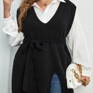 SHEIN Essnce صدرية ثقيلة بحافة شق حزام بدون بلوزة مقاس كبير – Size: 3XL