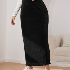 SHEIN EZwear تنورة نحيل خصر عالي محبوك مضلع مقلم نمط نبات الخس مقاس كبير – Size: 1XL