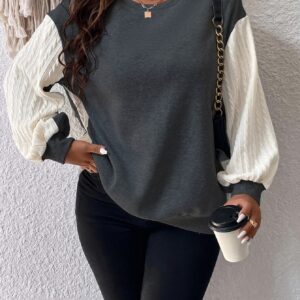 SHEIN Essnce مقاس كبير لباس علوي محبوك ياقة مستديرة – Size: 3XL