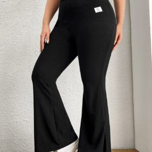 SHEIN EZwear بنطلون بساق واسع تفاصيل مرقع بعبارة بحافة شق مقاس كبير – Size: 2XL