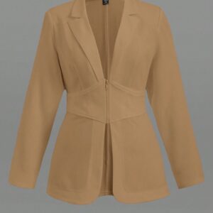 SHEIN Clasi جاكيت بياقة مطوي مسنن سستة مقاس كبير – Size: 1XL