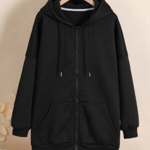 هودي سستة منخفض الاكتاف رباط مبطن حراري طويل مقاس كبير – Size: 4XL