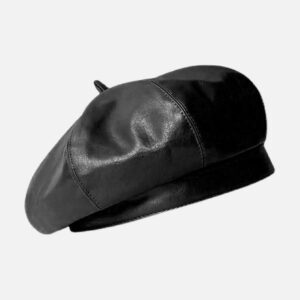 قبعة بيرية جلد صناعي موحدة اللون – Size: one-size