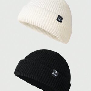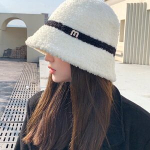 1 قطعة قبعة صياد السمك متماسكة بيضاء للنساء مع حرف M، دفء الشتاء والحماية من البرد، مناسبة للأنشطة الخارجية والاستخدام اليومي – Size: one-size