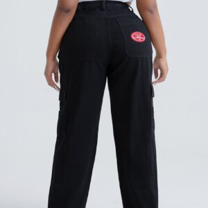 بنطلون جينز بجيب رفرف بتفاصيل مرقع بخصر عالي مقاس كبير – Size: 4XL