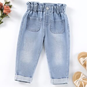 بنطلون جينز تابرد خدش قط بجيب مزدوج وخصر بيبرباغ أطفال – Size: 12-18M