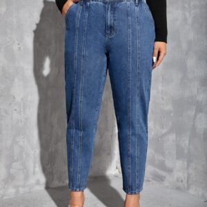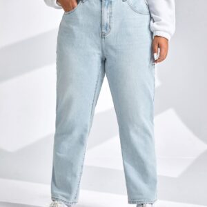 SHEIN Essnce جينز أم خصر عالي مدرز تفاصيل مقاس كبير – Size: 0XL