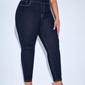 SHEIN Essnce بنطلون جينز نحيل خصر مرن مقاس كبير – Size: 4XL