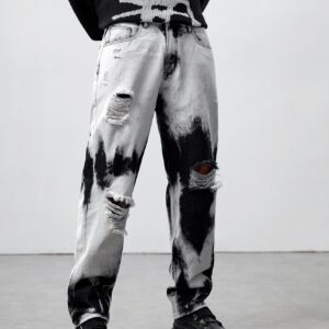 ROMWE جينز بساق مستقيم قطن صبغ متعادل ممزق للشباب – Size: S