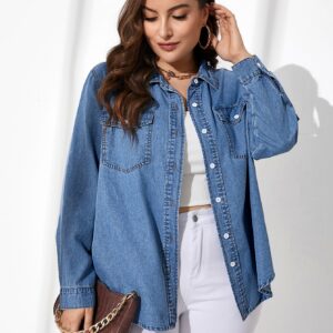 SHEIN Essnce ملابس علوية جينز حجم كبير بازرارأمامية الجيب الصاف كاجوال – Size: 0XL