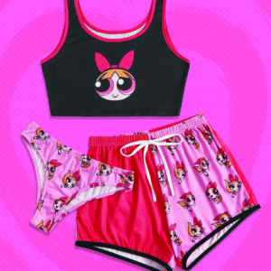 The Powerpuff Girls | ROMWE طقم بيجامة صور رسوم كارتون شريط متباين 3 قطع – Size: L