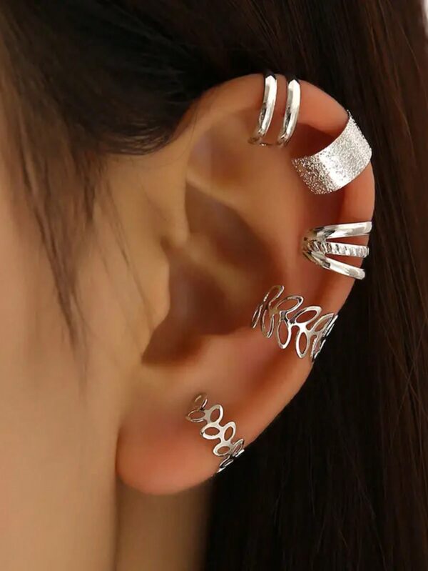 آلية للإذن/ملقط شعربخرزة فضية مجوفة بشكل ورقة ، يناسب الأذن الواحدة/مقاطع شعر 5 قطع/مجموعة – Size: one-sizeحالة التوفر: متوفر في المخزون