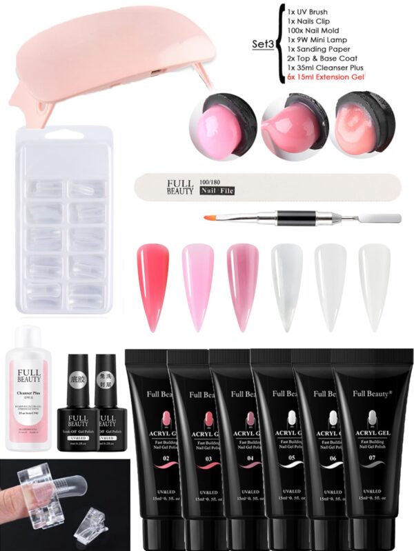 اظافر صمغ يمتد صمغ طقم مضاعف اظافر قالب رأس مزدوج فرشاة تجفيف سريع العلاج بالضوء كريستال اظافر طقم – Size: