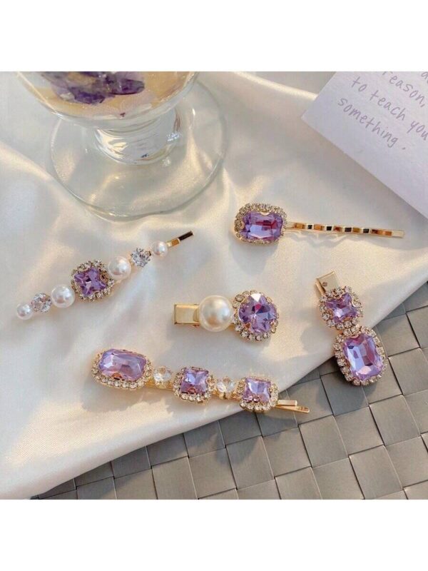 الدبابيس ومشابك الشعر المرصعة بالحجارة الكريمة المعدنية عالية الجودة 5 قطع/مجموعة – Size: one-size
