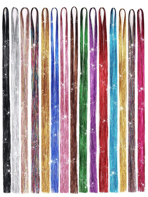 بريق شعر مستعار القوس القزحي ملون خيوط فتاة أغطية رأس شعر ليزر مزيف وصلة شعر مبالغ فيه زخارف لامع حفلة – Size: 24 inchحالة التوفر: متوفر في المخزون