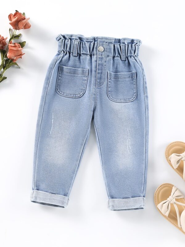 بنطلون جينز تابرد خدش قط بجيب مزدوج وخصر بيبرباغ أطفال – Size: 12-18M
