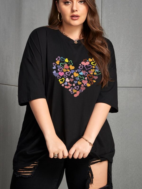 تي شيرت منخفض الاكتاف بطباعة قلب مقاس كبير – Size: 2XL