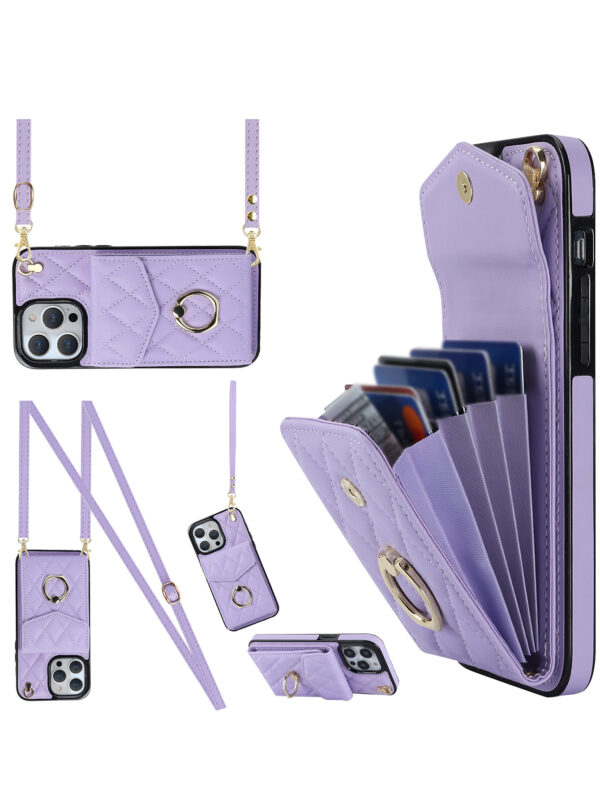 حافظة بطاقات متعددة الفتحات مع حلقة وثيقة ورباط مضاد للتساقط، علبة للهاتف النقال – Size: 7p/8p