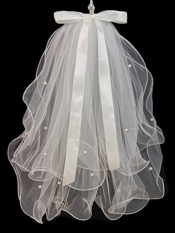 كمية حجاب زفاف بتفاصيل لؤلؤ صناعي مزخرف بعقدة الفراشة - Size: one-size