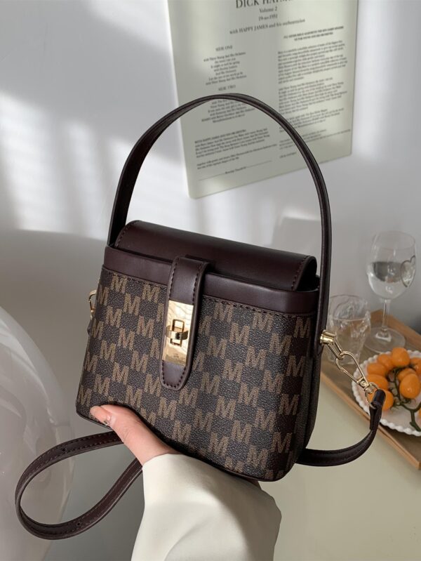 حقيبة مربعة ميني بقفل لف وطباعة عبارة – Size: