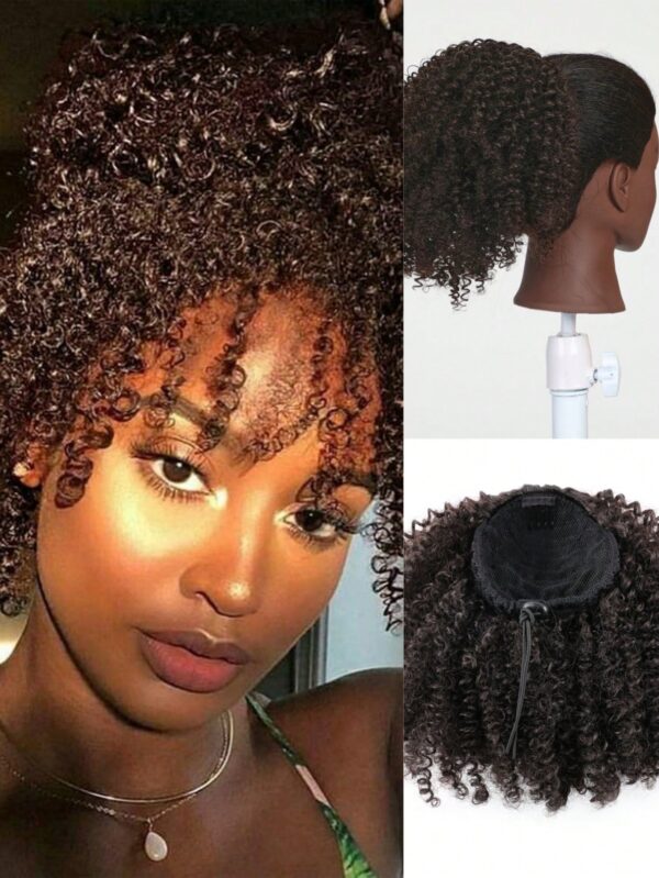 ذيل حصان قصير مستنسخ 10 إنش، خصلات مجعدة وقابلة للتصفيف بقفاز الشعر، شعر اصطناعي طبيعي للمرأة – Size: 10 Inch