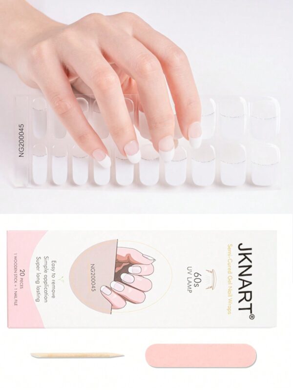 رفع مستوى أناقتك مع مجموعة واحدة من شرائط طلاء أظافر جيل شبه معالجة 20 قطعة ، تصميم فرنسي أبيض لصق جميع الأظافر يناسب الحفلات والهدايا (يحتاج إلى مصباح Uv) – Size: