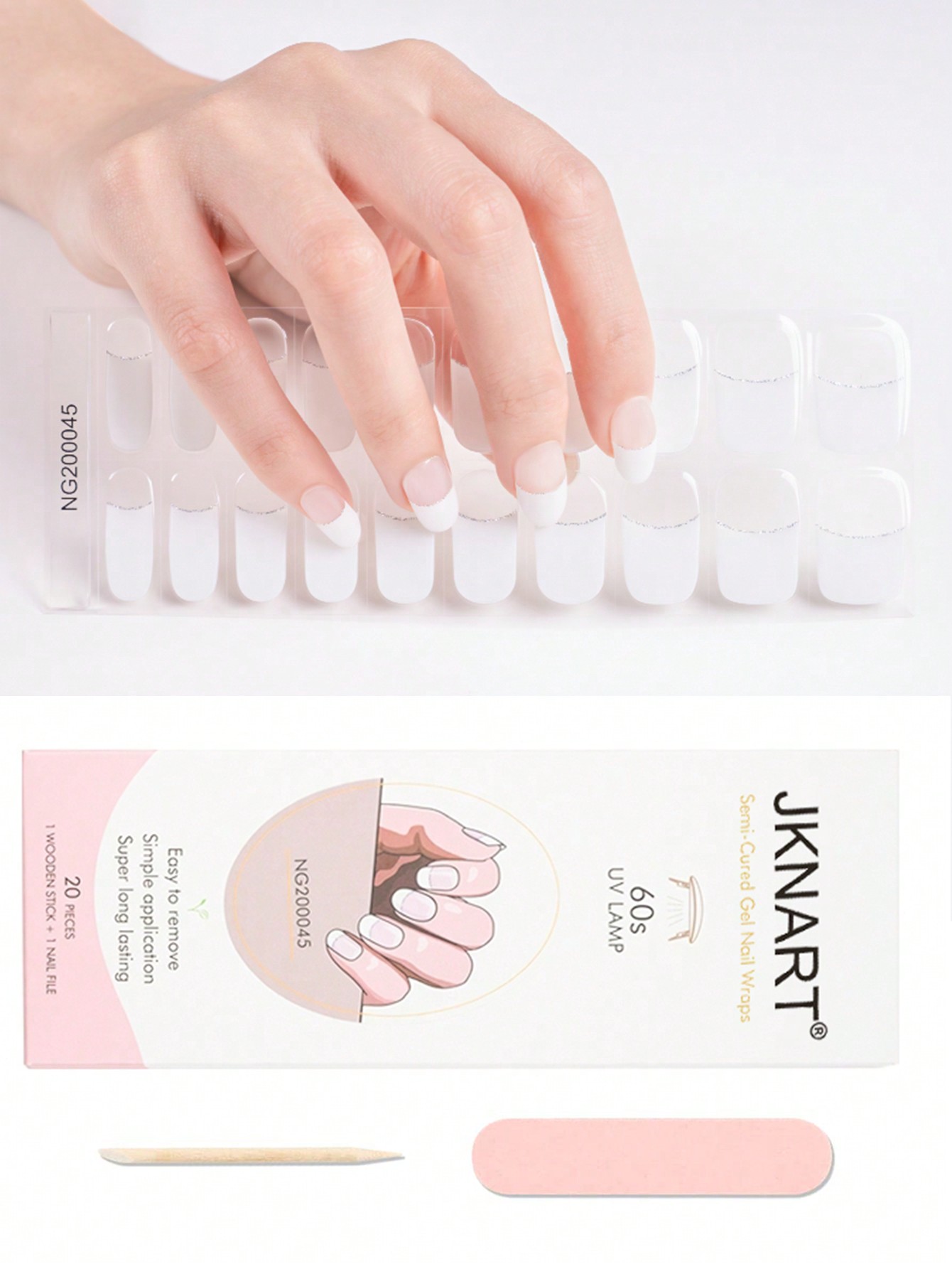 رفع مستوى أناقتك مع مجموعة واحدة من شرائط طلاء أظافر جيل شبه معالجة 20 قطعة ، تصميم فرنسي أبيض لصق جميع الأظافر يناسب الحفلات والهدايا (يحتاج إلى مصباح Uv) – Size:حالة التوفر: متوفر في المخزون