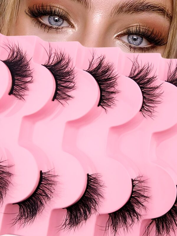 رموش نصفية 7 أزواج بطول 10 مم بمظهر عين القطة وذيل طويل، رموش كاذبة خط الفراء الاصطناعي – Size: