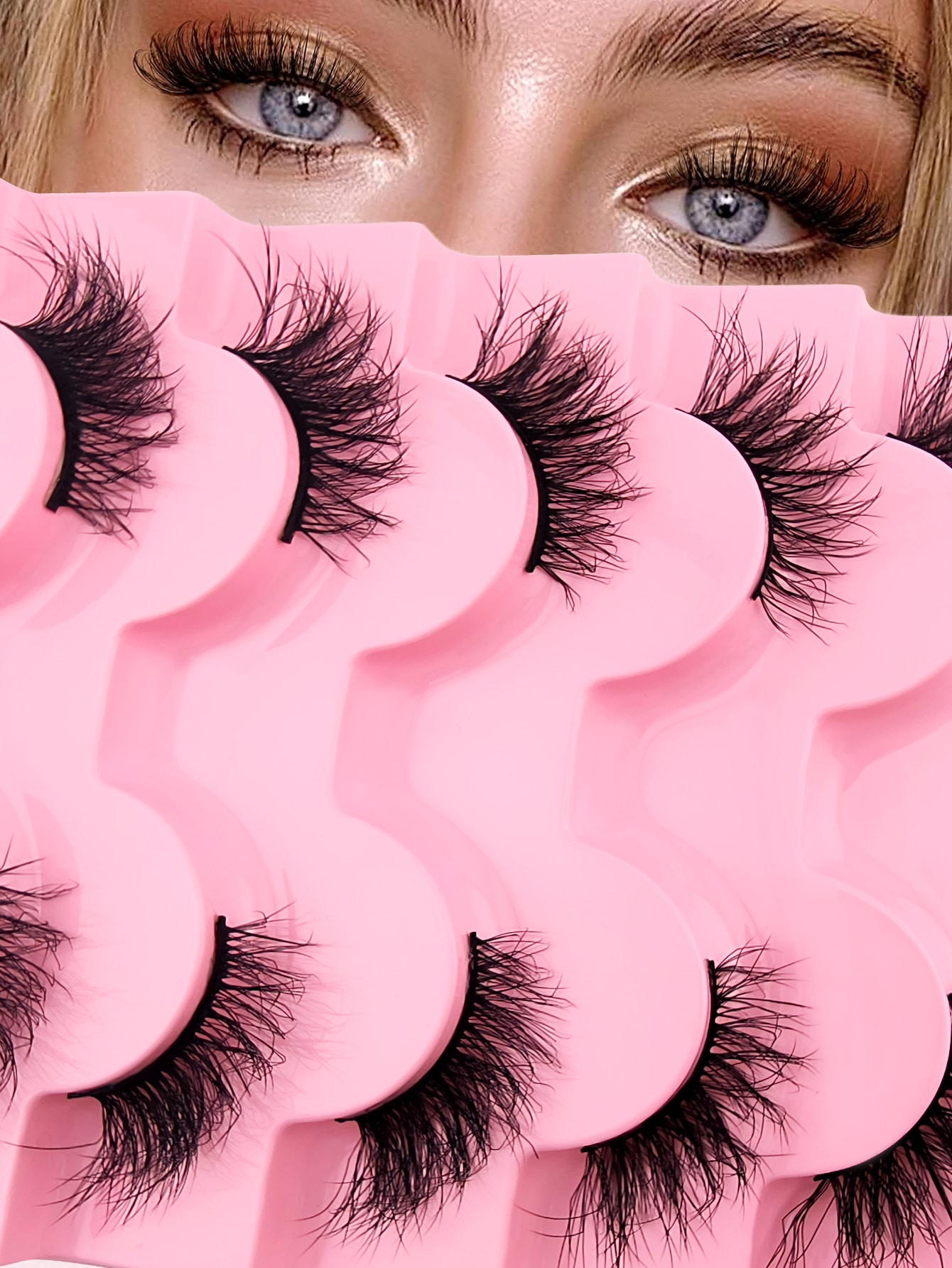 رموش نصفية 7 أزواج بطول 10 مم بمظهر عين القطة وذيل طويل، رموش كاذبة خط الفراء الاصطناعي – Size:حالة التوفر: متوفر في المخزون