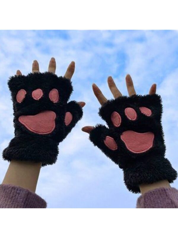 زوج واحد من القفازات بدون أصابع بتصميم كرتوني لطيف على شكل مخلب القط، مناسبة للاستخدام اليومي – Size: