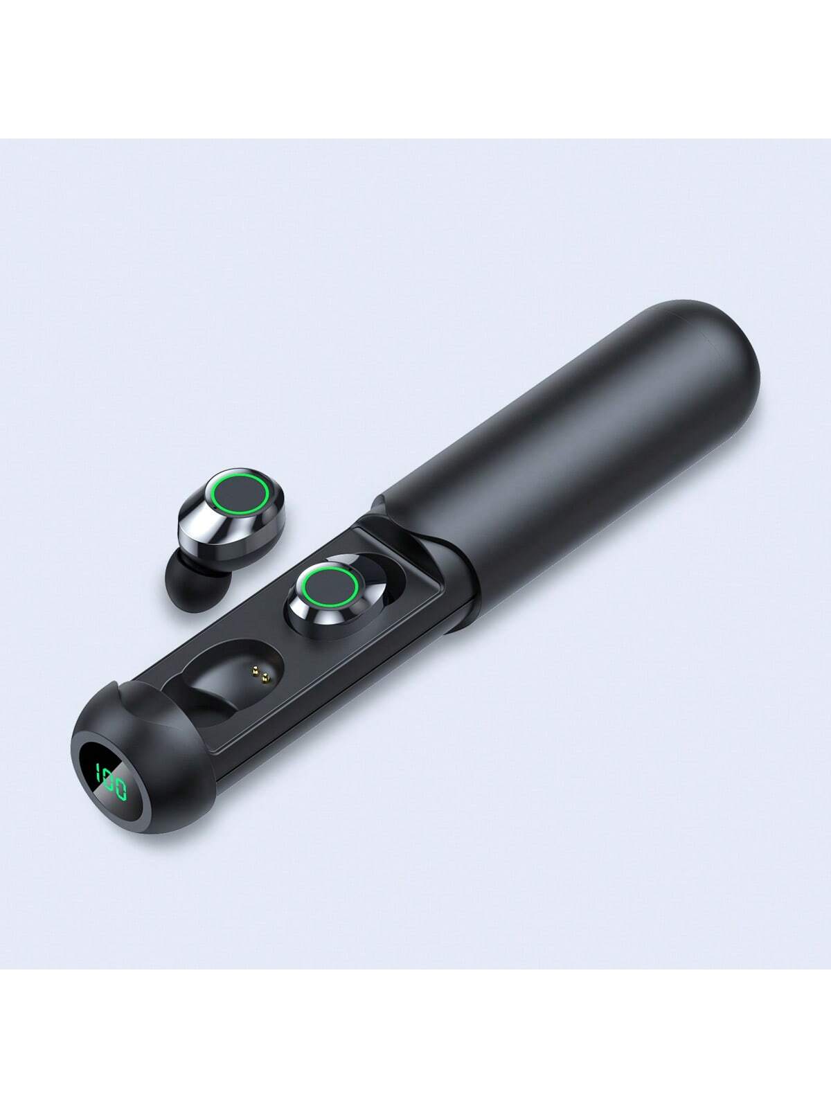 سماعات الأذن اللاسلكية الحقيقية الاستريو ، سماعات رأس Tws مع لمسة تحكم مدمجة بالميكروفون ، جودة صوت عالية الوضوح، علبة شحن ذات عرض رقمي ليد للهواتف الذكية – اللون أسود – Size: one-size