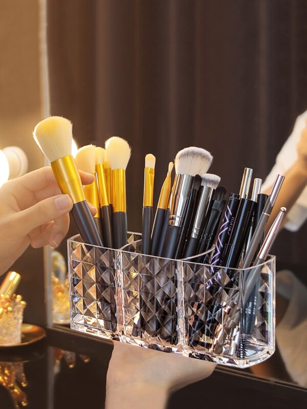شفاف حامل فرشاة مكياج منظم , قطعة واحدة 3فتحة بلاستيك بريق منظم مكياج , كحل قلم حواجب متفاخر غلاف , حامل قلم رصاص الى طاولة , تخزين , مرتب , مكتب و لوازم مدرسية , طاولة منظم الى مضمد , حمام & ميسا – Size: one-size