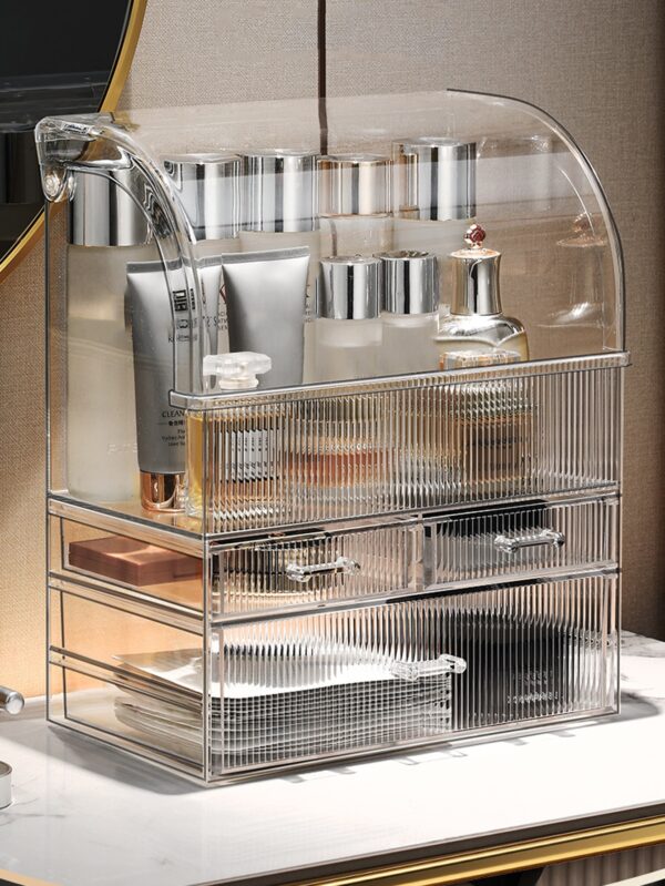 صندوق تخزين مستحضرات التجميل متعدد الوظائف مع أدراج شفافة، منظم بلاستيك شفاف مقاوم للماء والغبار بحجم كبير لطاولة التسريح، يناسب مستحضرات التجميل والمجوهرات وتخزين اللوازم المكتبية – Size: one-size