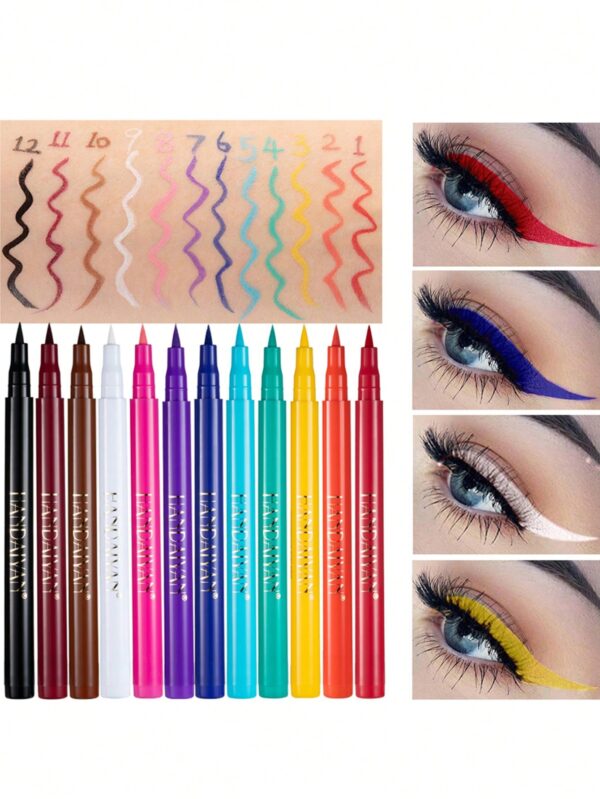 ضد للماء قلم ايلاينر , 12 قطعة القوس القزحي كحل طقم يدوم طويلا قلم كحل عدة – Size: