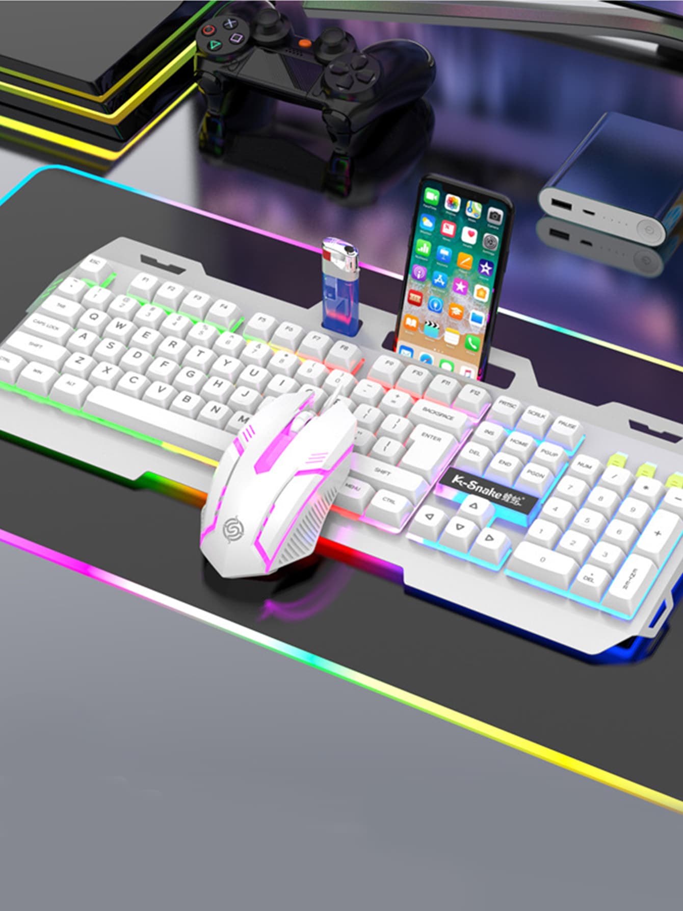 ضوء LED سلكي حامل الهاتف تصميم لوحة المفاتيح والماوس كومبو – Size: one-size