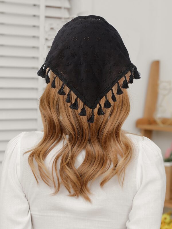 عصابة شعر مطرز بأزهار مقلم بشرابة – Size: one-size