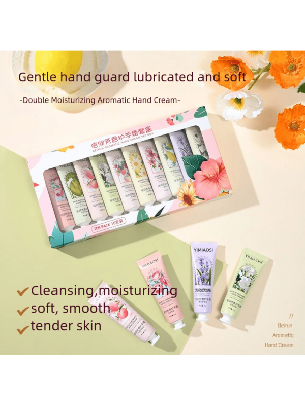 علبة 10 قطع من مجموعة هدية كريم اليد الزهري الفواكه، رطب ومعطر ، حماية الجلد الجاف والتشققات ، هدية مثالية – Size: