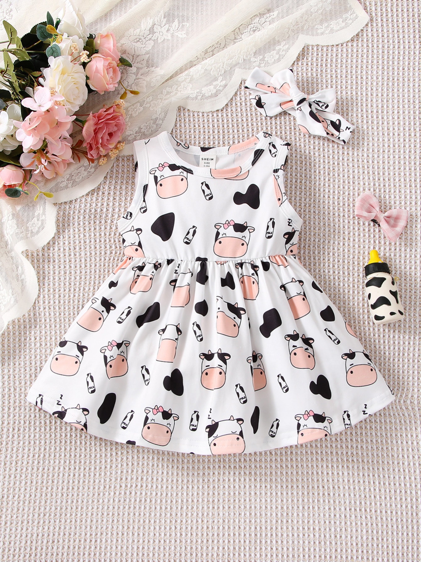 فستان بطباعة بقرة مع عقال الرأس للاطفال – Size: 2-3Y
