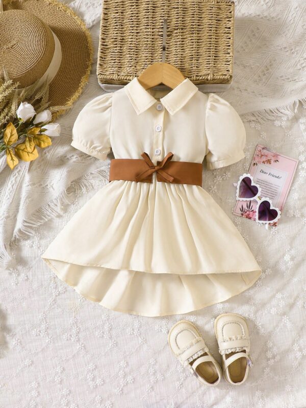 فستان قميص اكمام منتفخة حافة منخفضة وعالي حزام للاطفال – Size: 2-3Y