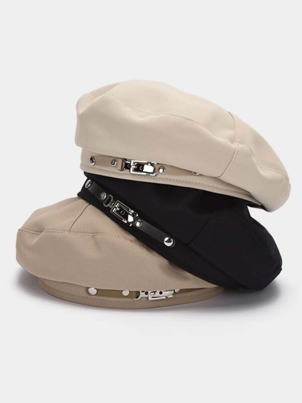 قبعة بريه قوس كاشف معدنية نمط ياباني للنساء قطعة واحدة، قبعة ثمانية الأضلاع رقيقة ،قبعة رسام بريطاني عتيقة جميلة تبرز وجهك وعصرية – Size: one-size