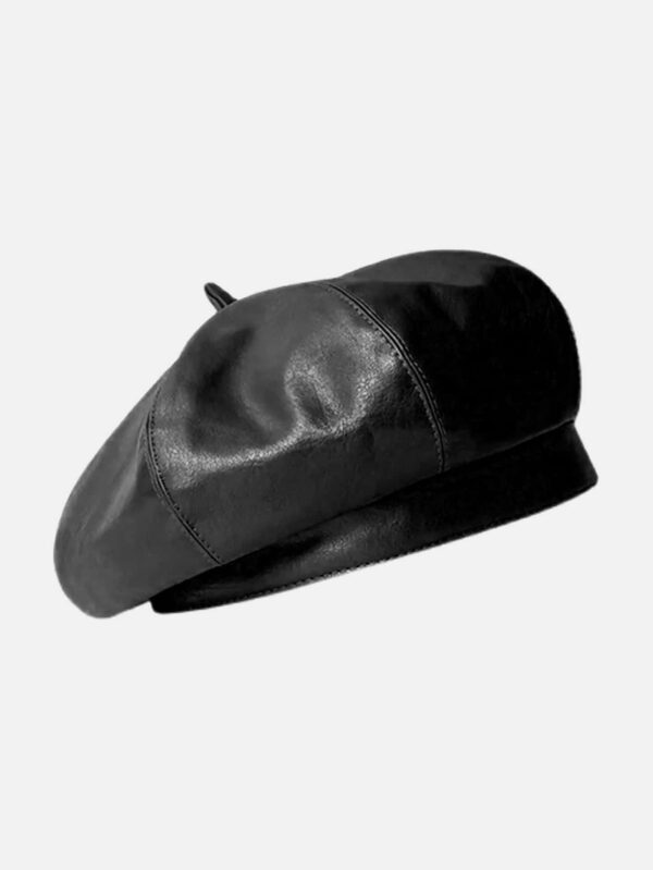 قبعة بيرية جلد صناعي موحدة اللون – Size: one-size