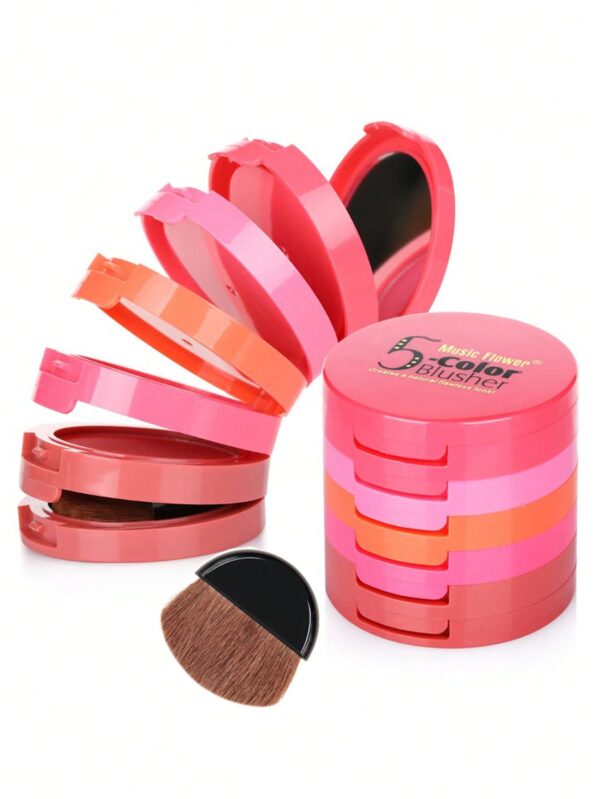 قطعة واحدة 5ألوان احمر الخدود مسحوق عدة مع قطعة واحدة فرشاة مكياج مكياج – Size: