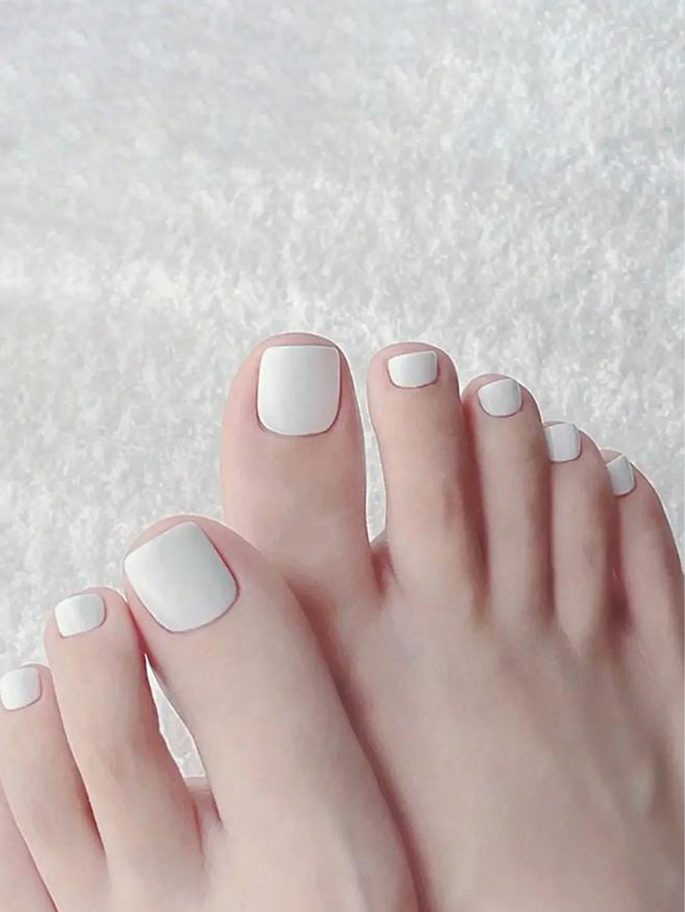قم بترقية مظهرك باستخدام 24 قطعة من الضغط الصلب على أظافر القدم، تصميم أبيض لامع للترفيه، غطاء كامل لأظافر القدم، مناسب للحفلات والرقص والارتداء اليومي – Size:حالة التوفر: متوفر في المخزون