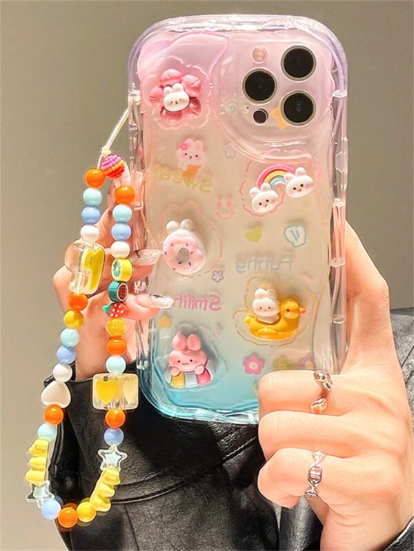 كفر موبايل تصميم رسوم كارتون مزخرف بأرنب مضاد للسقوط مع حبل عنق – Size: 11