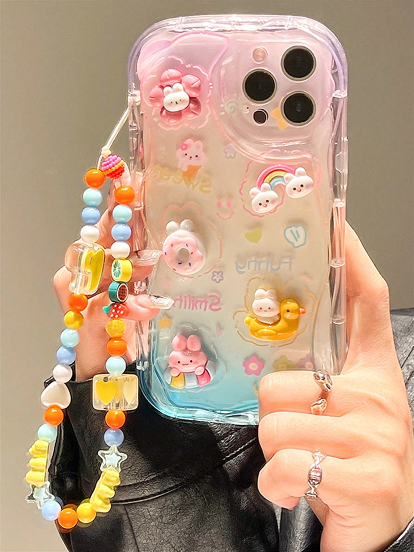 كفر موبايل تصميم رسوم كارتون مزخرف بأرنب مضاد للسقوط مع حبل عنق – Size: 11حالة التوفر: متوفر في المخزون