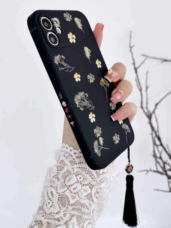 كمية كفر موبايل نمط زهر مع شرابة تعليقة - Size: XS Max