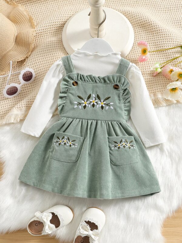 للاطفال مقلم نمط نبات الخس تي شيرت و مطرز بأزهار فستان افارول – Size: 9-12M