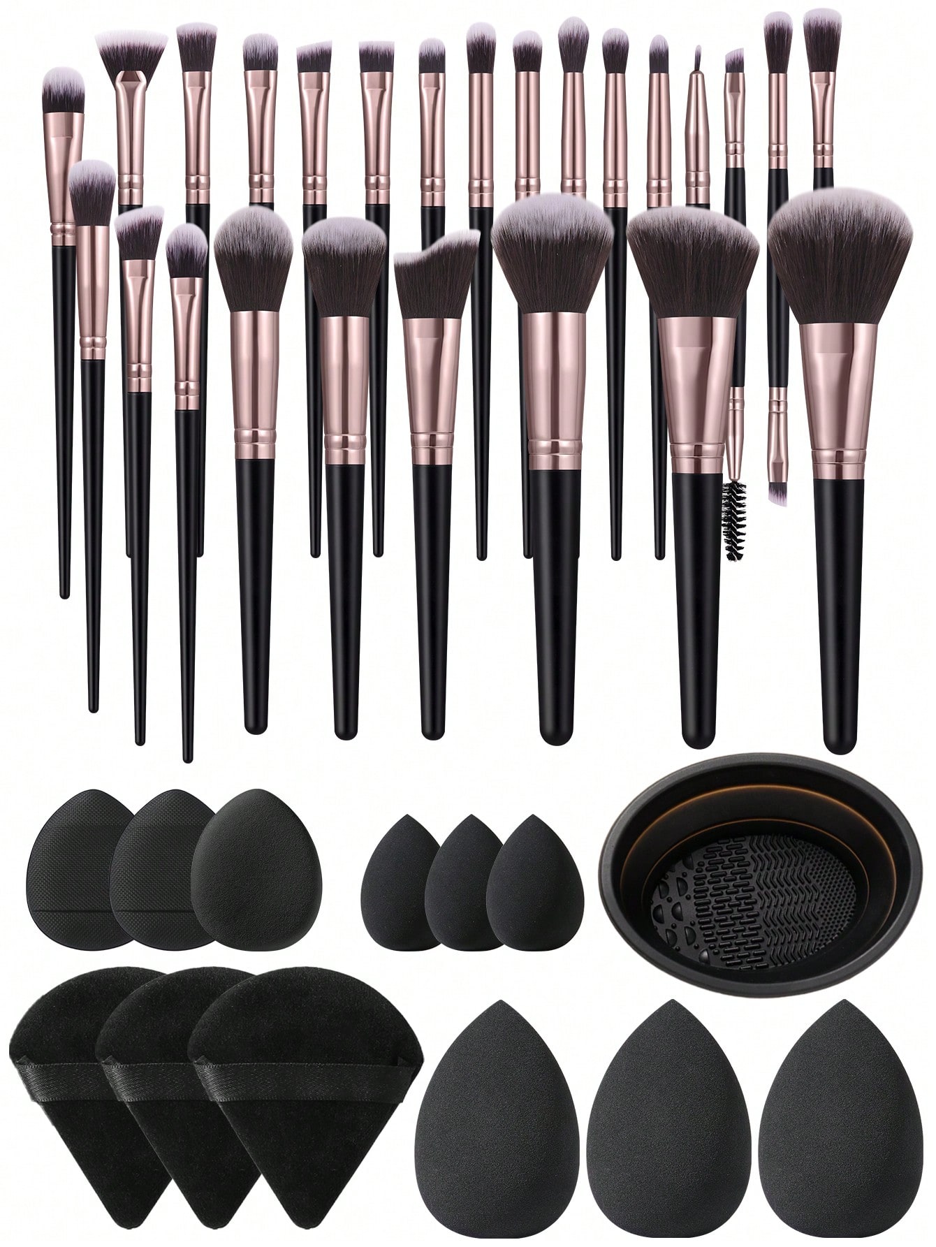 مجموعة أدوات المكياج + 25 قطعة من فرش المكياج + قطعة واحدة من فرشاة التنظيف + 6 قطع منتفخة للمكياج + 6 قطع من إسفنجة المكياج – Size: